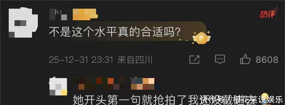 其实这些只是今年跨年晚会上的冰山一角。真正让网友炸锅的,是沈佳润的表演。前阵子因为一首《美美桑内》在网上火得不要不要的,人设一度被捧成新晋“星二代”代表,业内外夸了个遍。但是江苏卫视舞台上她和毛不易合作《不染》,一张嘴直接抢拍,第一句唱完就开始大跑调。热搜瞬间被“沈佳润跑调”“沈佳润紧张到哭”等词条攻占,网友吐槽水平根本配不上上台,甚至觉得毛不易自己单独唱效果还更好。后面沈佳润也光速发文道歉,说对不起影响了同伴,也谢谢宽容的粉丝承诺以后多练习,争取下一次上台拿出点成果。她爸小沈阳也挺坦率,不护短,直接喊以后继续加油。