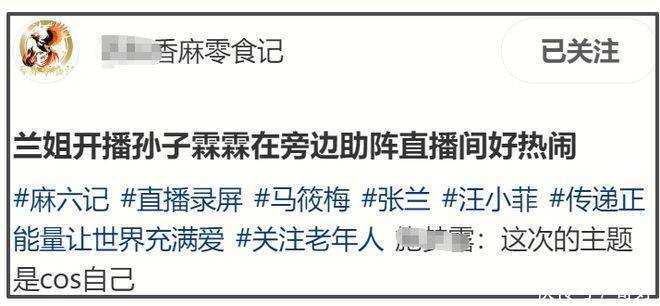 之后,张兰在直播中脱掉外套,穿上了一件条纹短袖,似乎有人在弹幕里问她年纪多大,张兰便一边念着问题,一边回应。没想到,汪希箖突然插话,戏谑地说张兰是千年老妖。这一言之不合,居然没有让张兰生气,反而引发了一阵大笑。许多网友认为,这样的玩笑说明了祖孙二人关系的融洽,汪希箖显然对奶奶充满爱意。