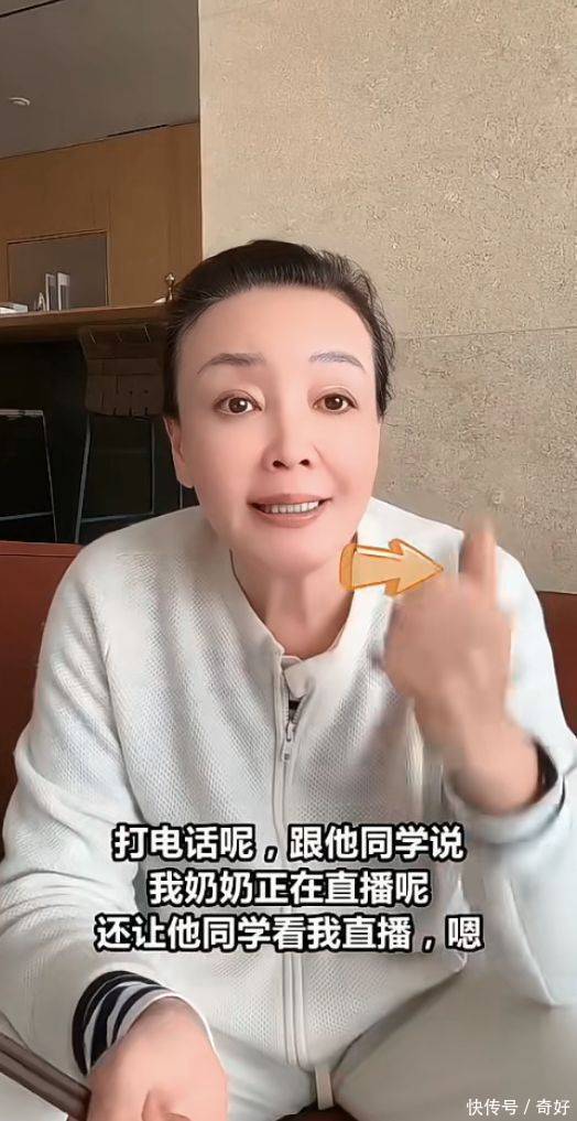 直播中,张兰听见孙子汪希箖与同学交谈,便转头看向他,笑得合不拢嘴。然后,她透露,汪希箖是在向同学们炫耀,告诉他们自己的奶奶正在直播。张兰看到汪希箖因为自己而感到骄傲,脸上写满了满足和自豪。她感叹着,要更加努力,给孩子做一个更好的榜样。